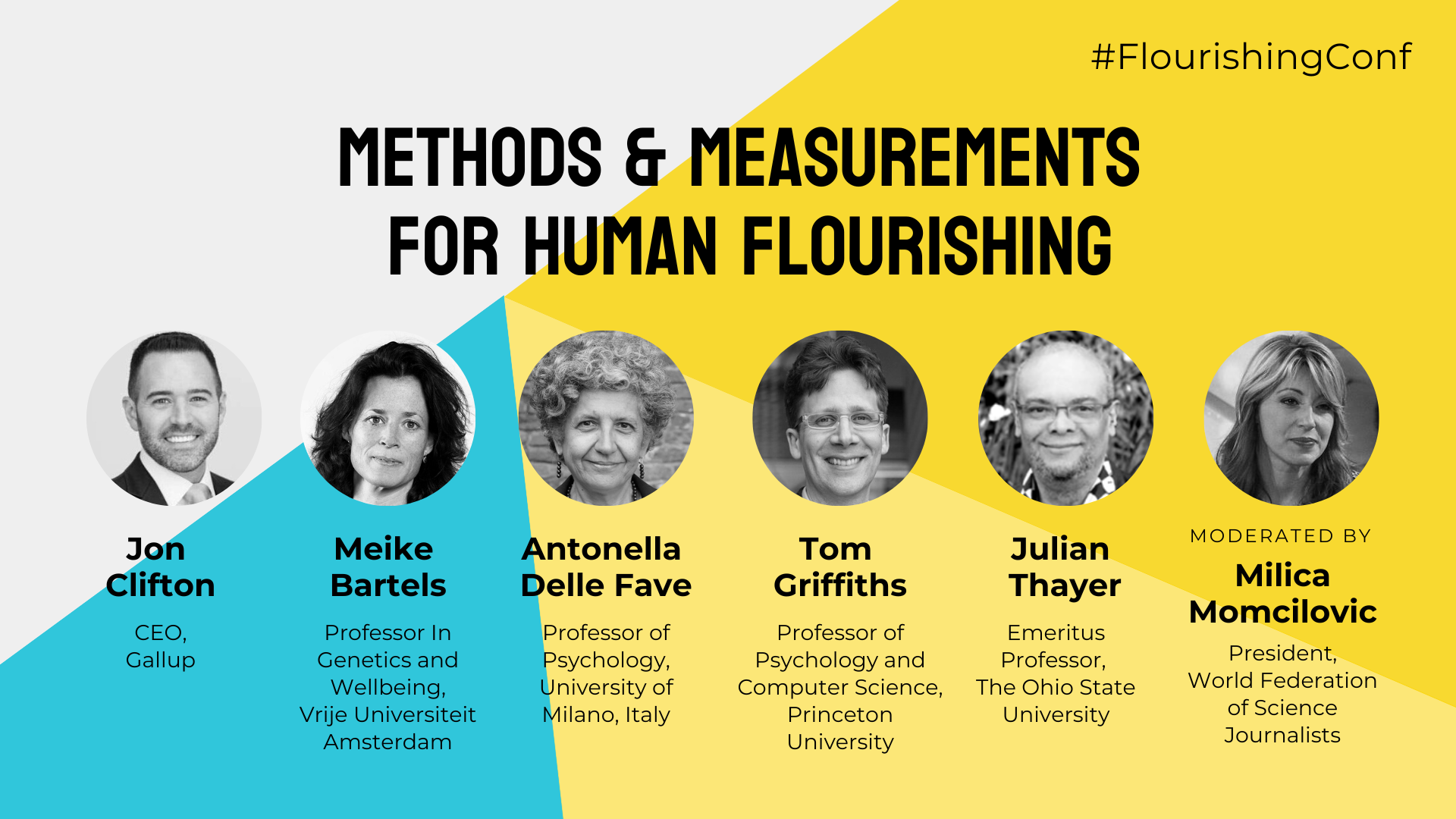 Jon Clifton, CEO, Gallup; Meike Bartels, Professor In Genetics and Wellbeing, Vrije Universiteit Amsterdam; Antonella Delle Fave, Professor of Psychology,	University of Milano, Italy; Tom Griffiths, Professor of Psychology and Computer Science, Princeton University; Julian Thayer, Emeritus Professor, The Ohio State University